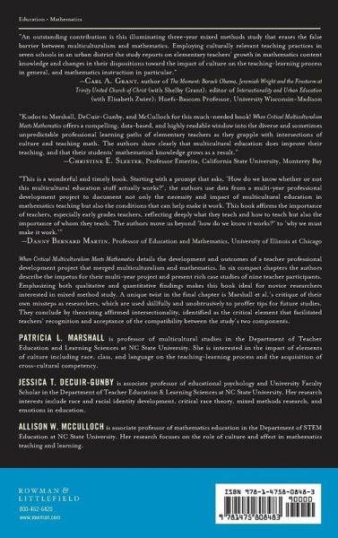 When Critical Multiculturalism Meets Mathematics details the development and outcomes of a teacher professional development project that merged multiculturalism and mathematics. In six compact chapters the authors describe the impetus for their multi-year project and present rich case studies of nine teacher participants.