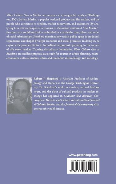 When Culture Goes to Market encompasses an ethnographic study of Washington, DC's Eastern Market, a popular weekend produce and flea market, and the people who constitute it: vendors, market supervisors, and customers. By analyzing how this marketplace, in contrast to theoretical notions of «The Market», functions as a social institution embedded in a particular time, place, and series of social relationships, Shepherd examines how urban public space is produced, reproduced, and shaped by larger economic and social processes. In doing so, he explores the practical limits to formalized bureaucratic planning in the success of this street market. Crossing disciplinary boundaries, When Culture Goes to Market is an excellent practical case study for courses in urban planning, microeconomics, cultural studies, urban and economic anthropology, and sociology.