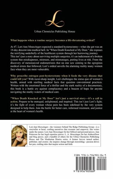 Discover the Shocking Truth Behind a Medical System in Crisis in Lori Ann Moeszinger's Gripping New Book "When Death Knocked at My Door: The 5 Moments that Changed My Life" reveals the harrowing account of Jaimi Taylor, whose routine hysterectomy spiraled into an 18-day nightmare. This eye-opening narrative exposes the deep flaws in our healthcare system through the personal struggle of one woman battling for her life against a backdrop of medical mismanagement and systemic failures. What You'll Find Inside: A Terrifying Ordeal: Follow Jaimi Taylor's journey through two hospitals and four life-threatening surgeries, beginning with what was meant to be a straightforward medical procedure. A System Exposed: Delve into the failures of healthcare professionals to diagnose and treat endometriosis correctly, a disease that nearly cost Jaimi her life after being overlooked and mishandled for years. A Call to Action: This book serves as a rallying cry for anyone who has faced the healthcare system's shortcomings. It highlights the urgent need for informed medical advocacy and systemic change, especially concerning women's health. Why This Book Is a Must-Read: Insightful and Informative: Gain a deeper understanding of endometriosis and the critical medical issues that can arise from common but dangerous oversights. Empowering: Learn how Jaimi's fight can help others advocate for themselves within the healthcare system, encouraging a push towards better medical practices and patient safety. Profoundly Personal: Lori Ann Moeszinger writes with the intensity and detail of a seasoned storyteller, making you feel every step of Jaimi's perilous journey. Join Lori Ann Moeszinger in a compelling exploration of courage, medical controversy, and the dire need for healthcare reform. "When Death Knocked at My Door" is not just a book-it's a wake-up call to everyone who believes in the necessity of a trustworthy and accountable medical system. Get your copy today and be part of a movement towards better, safer, and more responsive healthcare.