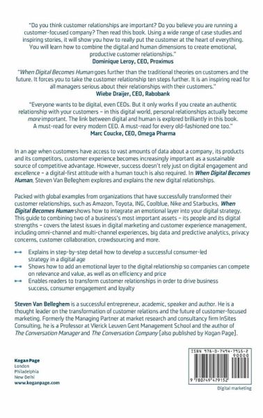 WINNER: 2016 Chartered Management Institute Management Book of the Year - Commuter's Read Category In an age when customers have access to vast amounts of data about a company, its product and its competitors, customer experience becomes increasingly important as a sustainable source of competitive advantage. But success doesn't just rely on digital engagement and excellence, but also on combining a digital-first attitude with a human touch. In When Digital Becomes Human, Steven Van Belleghem explores and explains the new digital relationships. Packed with global examples from organizations that have successfully transformed their customer relationships, such as Amazon, Toyota, ING, Coolblue, Nike and Starbucks, When Digital Becomes Human presents a clear model that companies can easily implement to integrate an emotional layer into their digital strategy. This guide to combining two of a business's most important assets - its people and its digital strengths - covers the latest issues in digital marketing and customer experience management, including omnichannel and multichannel experiences, big data and predictive analytics, privacy concerns, customer collaboration (ie crowdsourcing) and more.