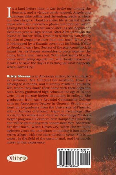 In a land before time, a war broke out among the heavens, and a vicious battle ensued. Angels and demons alike collide, and the ending result is where our story begins. Brookes entire life is turned upside down when she receives a phone call from her sister, asking her to take in her niece, Alex, as she begins her freshman year of high school. After Alex arrives on the island of Harbor Hills, Brooke is suddenly caught up in a plot of vengeance older than time itself. When Alex is kidnapped by a Satanic coven out for blood, its up to Brooke to save her. Secrets of the past come back to haunt her as Brooke scrambles to piece together the clues before time runs out. With what seems like the entire world going against her, will Brooke have what it takes to save the day? Or is this just what happens, When Doves Cry?