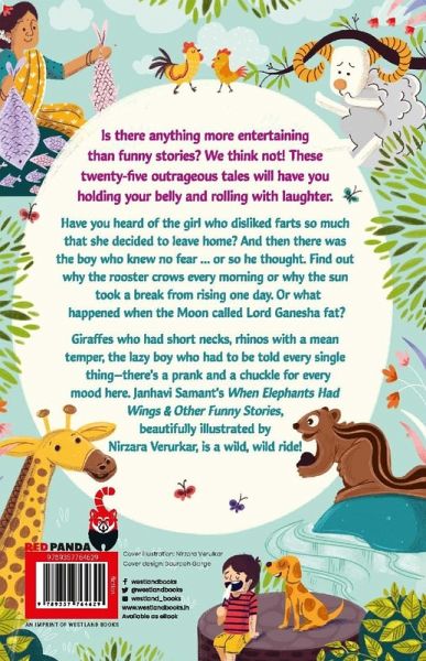 About the Book A COLLECTION OF TWENTY-FIVE RIB-TICKLING STORIES TO TICKLE KIDS' FUNNY BONE. Is there anything more entertaining than funny stories? We think not! These twenty-five outrageous tales will have you holding your belly and rolling with laughter. Have you heard of the girl who disliked farts so much that she decided to leave home? And then there was the boy who knew no fear ... or so he thought. Find out why the rooster crows every morning or why the sun took a break from rising one morning. Or what happened when the Moon called Lord Ganesha fat. Giraffes who had short necks, rhinos with a mean temper, the lazy boy who had to be told every single thing-there's a prank and a chuckle for every mood here. Janhavi Samant's When Elephants Had Wings and Other Funny Stories, beautifully illustrated by Nirzara Verurkar, is a wild, wild ride! About the Author Janhavi Samant loves telling stories. As a journalist, she told stories about Mumbai and its people. Then she authored Faaltugiri and Other Flashbacks, a book narrating funny stories from her childhood. Today she is a content marketing professional who creates content around brands. As a child, Janhavi would hear many tales-some funny, some heroic, some tragic and some downright disgusting-from her grandmom and parents. As a mom, she loves retelling and recycling and even making up a few stories for her own kids at bedtime. She believes stories build bonds between parents and kids. Besides, they are the easiest way to imagine ourselves in a different place. The wise say that those who tell stories rule the world. So Janhavi is getting ready to rule this world!