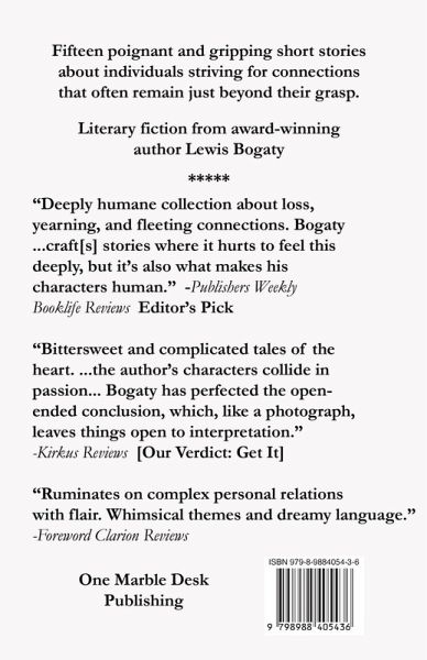 Lewis Bogaty is a writer and photographer living in New York. When Elsa Sang The Blues is his second short story collection. Loves And Entanglements, his first collection, was published in 2024. His fiction has also appeared in Virginia Quarterly Review, Mississippi Review, Descant, Sou'Wester, Another Chicago Magazine, Confrontation, and others. His non-fiction has appeared in Virginia Quarterly Review, Columbia Law Review, and various other magazines and newspapers.His short story in Kansas Quarterly received a Kansas Quarterly/Kansas Arts Commission fiction award. He has also received a BRIO fiction award from the Bronx Council On The Arts. Loves And Entanglements, in an earlier version, was a semi-finalist in the 2021 Elixir Press Fiction Award competition.His photographs have been exhibited in solo and group shows, most recently in Upstream Gallery's 2024 national juried photography show. His images have appeared in the New York Times and other newspapers, magazines and corporate publications. His prints are owned by institutions and private collectors.He holds a Ph.D. in English and a J.D. law degree, and was an editor on the Columbia Law Review. www.LewisBogaty.comwww.LewisBogatyPhotography.comInstagram: @lewisbogaty