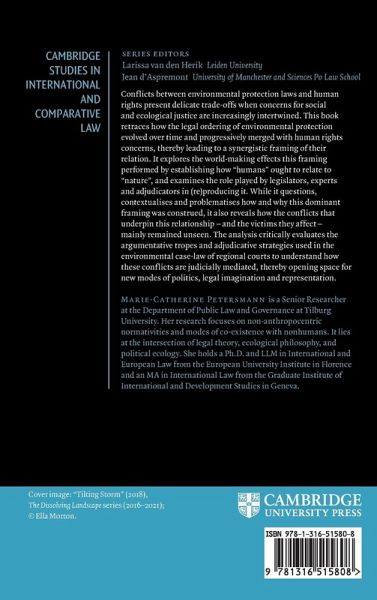 Part I. Constructing Synergies - Framing the Environment - Human Rights Interface: 1. Narratives of environmental and human rights protection - from a 'Pristine Wilderness' to a 'Human Environment'; 2. Horizons of synergy - adjudicating environmental and human rights protection; 3. Constructing and contesting anthropocentric synergies; 4. Countering the dominant frame - an account of trade-offs and tensions; Part II. Conflict Mediation through Universalisation: 5. The general interest as universalisation strategy; 6. Expert knowledge as universalisation strategy.