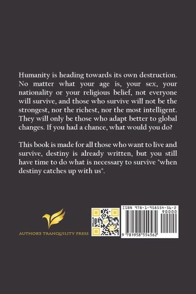 Humanity is heading towards its own destruction. No matter what your age is, your sex, your nationality or your religious belief, not everyone will survive, and those who survive will not be the strongest, nor the richest, nor the most intelligent. They will only be those who adapt better to global changes. If you had a chance, what would you do? This book is made for all those who want to live and survive, destiny is already written, but you still have time to do what is necessary to survive "when destiny catches up with us".