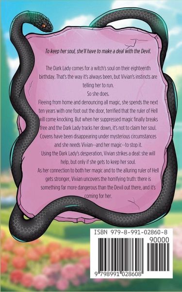 To keep her soul, she'll have to make a deal with the Devil. The Dark Lady comes for a witch's soul on their eighteenth birthday. That's the way it's always been, but Vivian's instincts are telling her to run. So she does. Fleeing from home and denouncing all magic, she spends the next ten years with one foot out the door, terrified that the ruler of Hell will come knocking. But when her suppressed magic finally breaks free and the Dark Lady tracks her down, it's not to claim her soul. Covens have been disappearing under mysterious circumstances and she needs Vivian--and her magic--to stop it. Using the Dark Lady's desperation, Vivian strikes a bargain: she will help, but only if she gets to keep her soul. As her connection to both her magic and to the alluring ruler of Hell gets stronger, Vivian uncovers the horrifying truth: there is something far more dangerous than the Devil out there, and it's coming for her. This is a sapphic paranormal romance with dual POV.