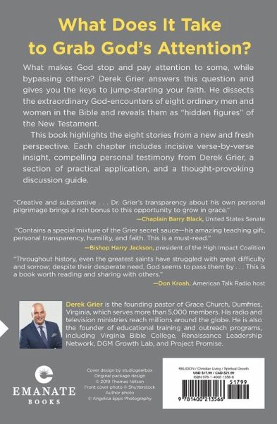 What Does It Take to Grab God's Attention? When God Stops shares the key to living a life that honors the Lord and jumpstarts your faith. Dr. Derek Grier dissects the extraordinary God-encounters of eight ordinary men and women in the Bible and reveals them as "hidden figures" of the New Testament. The retelling of the biblical accounts from a new perspective will uncover the answer to the age-old question: What makes God stop and pay attention? The answer is faith. Whether it was a man with leprosy, a sick child, or a short tax collector sitting in a tree, they all had one thing in common--a burning desire to get God's attention. Dr. Grier adds to the narrative by sharing the details of his personal pilgrimage. Growing up angry at God and looking for an identity, Grier eventually attended college and found the kind of faith that made him feel loved and centered for the first time in his life. Each chapter includes insightful verse-by-verse biblical teaching, compelling personal testimony, a section of practical application, and a thought-provoking discussion guide.