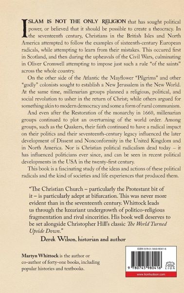 Islam is not the only religion that has sought political power, or believed that it should be possible to create a theocracy. In the seventeenth century, Christians in the British Isles and North America attempted to follow the examples of sixteenth-century European radicals, while attempting to learn from their mistakes. This occured first in Scotland, and then during the upheavals of the Civil Wars, culminating in Oliver Cromwell attempting to impose just such a rule "of the saints" across the whole country. On the other side of the Atlantic the Mayflower "Pilgrims" and other "godly" colonists sought to establish a New Jerusalem in the New World. At the same time, millenarian groups planned a religious, political, and social revolution to usher in the return of Christ; while others argued for something akin to modern democracy and some a form of rural communism. And even after the Restoration of the monarchy in 1660, millenarian groups continued to plot an overturning of the world order. Among groups, such as the Quakers, their faith continued to have a radical impact on their politics and their seventeenth-century legacy influenced the later development of Dissent and Nonconformity in the United Kingdom and in North America. Nor is Christian political radicalism dead today - it has influenced politicians ever since, and can be seen in recent political developments in the USA in the twenty-first century. This book is a fascinating study of the ideas and actions of these political radicals and the kind of societies and life experiences that produced them.