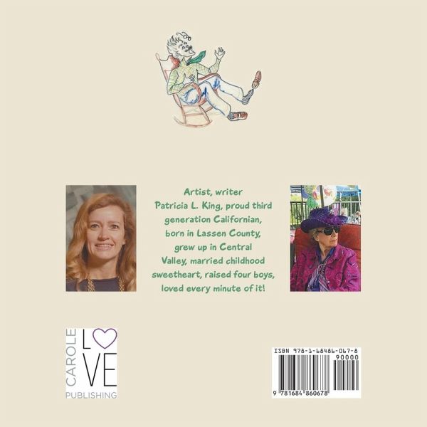 Artist, writer Patricia L. King, proud third generation Californian, born in Lassen County, grew up in Central Valley, married childhood sweetheart, raised four boys, loved every minute of it!