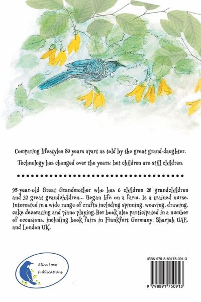 95-year-old Great Grandmother who has 6 children 20 grandchildren and 32 great grandchildren... Began life on a farm. Is a trained nurse.Interested in a wide range of crafts including spinning, weaving, drawing, cake decorating and piano playing. Her book also participated in a number of occasions, including book fairs in Frankfurt Germany, Sharjah UAE, and London UK.