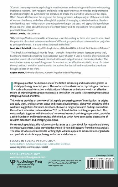 This volume is a comprehensive overview of classic and contemporary work on intergroup contact, combining an extensive meta-analysis of 515 published studies on the topic with the authors' renowned research. It provides researchers, students and professionals in social psychology and related fields with a rich sourcebook on intergroup contact, at a time of intergroup turmoil around the world.