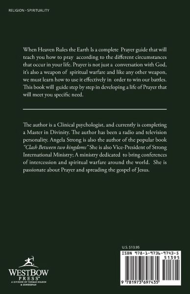 When Heaven Rules the Earth Is a complete Prayer guide that will teach you how to pray according to the different circumstances that occur in your life. Prayer is not just a conversation with God, it's also a weapon of spiritual warfare and like any other weapon, we must learn how to use it effectively in order to win our battles. This book will guide step by step in developing a life of Prayer that will meet you specific need.