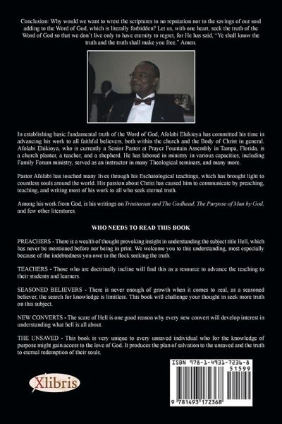In establishing basic fundamental truth of the word of God, this author has committed his time and effort in advancing his work to all who are faithful believers, both within the church as unit and to the body of Christ in general. Afolabi Ehikioya, is currently the senior Pastor at Kingdom Ministries International in Sioux City in the state of Iowa. He is a church planter, a teacher, a writer and a shepherd. He has labored in the ministry for over thirty-six years and still on duty in various capacities, including Gospel Assembly Churches in Ghana, in the west African regions, Prayer Fountain Assembly, Tampa Florida. An international speaker for Family Forum ministry, he also serves as an instructor in many Theological seminars, and much more. Pastor Afolabi has touched many lives through his Eschatological teachings, which have brought light to countless souls around the world. His passion about Christ has caused him to communicate by preaching, teaching, and writing most of his work to all who seek eternal truth. Among his work and books written by the grace of God, are his writings on When Hell Fails, Trinitarian and The Godhead, The Purpose of Man by God, Ministerial Ethics, Duties of The Called, A-Z Of The Bride of Christ, The Resurrection Vol. 1, 11, 111, The Purpose of Predestination and a few other literatures.