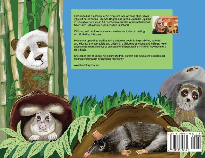 Helen has had a passion for Art since she was a young child, which inspired her to earn a Fine Arts Degree and later a Graduate Diploma in Education. Now as an Art Psychotherapist she works with Special Needs and Behavioural Needs children. Children and her love for animals, are her inspiration for writing and illustrating this book. Helen took up writing and illustrating children's books to help children, parents and educators to appreciate and understand children's emotions and feelings. Helen uses animal characteristics to express the different feelings children may have on a daily basis. She hopes that this book will inspire children, parents and educators to explore all feelings and provoke discussions confidently.