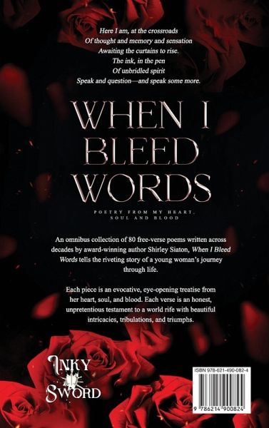 Here I am, at the crossroads Of thought and memory and sensation Awaiting the curtains to rise. The ink, in the pen Of unbridled spirit Speak and question-and speak some more. WHEN I BLEED WORDS Poetry from my heart, soul and blood An omnibus collection of 80 free-verse poems written across decades by award-winning author Shirley Siaton, When I Bleed Words tells the riveting story of a young woman's journey through life. Each piece is an evocative, eye-opening treatise from her heart, soul, and blood. Each verse is an honest, unpretentious testament to a world rife with beautiful intricacies, tribulations, and triumphs.