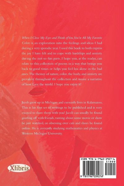 When I Close My Eyes and Think of You, You're All My Favorite Colors is an exploration into the feelings and ideas I had during a very sporadic year. I used this book to both express the joy I have felt and to cope with hardships and anxiety during the not-so-fun parts. I hope you, as the reader, can relate to this collection of poems in a way that brings you back to good times or helps you feel less alone in the bad ones. The themes of nature, color, the body, and anxiety are prevalent throughout the collection and weave a narrative of how I see the world. I hope you enjoy it!