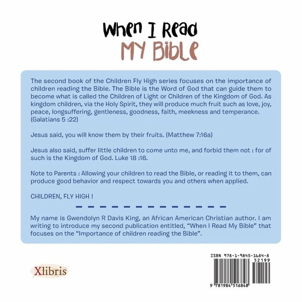 The second book of the Children Fly High series focuses on the importance of children reading the Bible. The Bible is the Word of God that can guide them to become what is called the Children of Light or Children of the Kingdom of God. As kingdom children, via the Holy Spirit, they will produce much fruit such as love, joy, peace, longsuffering, gentleness, goodness, faith, meekness and temperance. (Galatians 5 :22) Jesus said, you will know them by their fruits. (Matthew 7:16a) Jesus also said, suffer little children to come unto me, and forbid them not : for of such is the Kingdom of God. Luke 18 :16. Note to Parents : Allowing your children to read the Bible, or reading it to them, can produce good behavior and respect towards you and others when applied. CHILDREN, FLY HIGH !