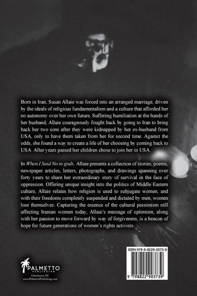 Born in Iran, Susan Allaie was forced into an arranged marriage, driven by the ideals of religious fundamentalism and a culture that afforded her no autonomy over her own future. Suffering humiliation at the hands of her husband, Allaie courageously fought back by going to Iran to bring back her two sons after they were kidnapped by her ex-husband from USA, only to have them taken from her for second time. Against the odds, she found a way to create a life of her choosing by coming back to USA. After years passed her children chose to join her in USA. In When I Said No to gods, Allaie presents a collection of stories, poems, newspaper articles, letters, photographs, and drawings spanning over forty years to share her extraordinary story of survival in the face of oppression. Offering unique insight into the politics of Middle Eastern culture, Allaie relates how religion is used to subjugate women, and with their freedoms completely suspended and dictated by men, women lose themselves. Capturing the essence of the cultural pessimism still affecting Iranian women today, Allaie's message of optimism, along with her passion to move forward by way of forgiveness, is a beacon of hope for future generations of women's rights activists.