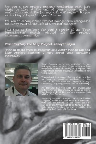 Are you a new project manager, are you a wondering what life might be like at the end of your career reminiscing about the journey with colleagues? Do you want a tiny glimpse into your future? Are you an accomplished project manager who likes to be able to see the funny in the life of a project manager? Well, this is the book for you "A parody of the four Yorkshiremen sketch for the project management community.