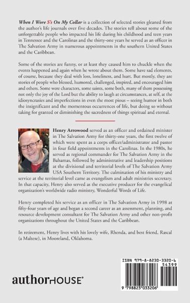 When I Wore S's On My Collar is a collection of selected stories gleaned from the author's life journals over five decades. The stories tell about some of the unforgettable people who impacted his life during his childhood and teen years in Tennessee and the Carolinas and the thirty-one years he served as an officer in The Salvation Army in numerous appointments in the southern United States and the Caribbean. Some of the stories are funny, or at least they caused him to chuckle when the events happened and again when he wrote about them. Some have sad elements, of course, because they deal with loss, loneliness, and hurt. But mostly, they are stories of people who blessed, humored, challenged, inspired, and encouraged him and others. Some were characters, some saints, some both, many of them possessing not only the joy of the Lord but the ability to laugh at circumstances, at self, at the idiosyncrasies and imperfections in even the most pious - seeing humor in both the insignificant and the momentous occurrences of life, but doing so without taking for granted or diminishing the sacredness of things spiritual and eternal.