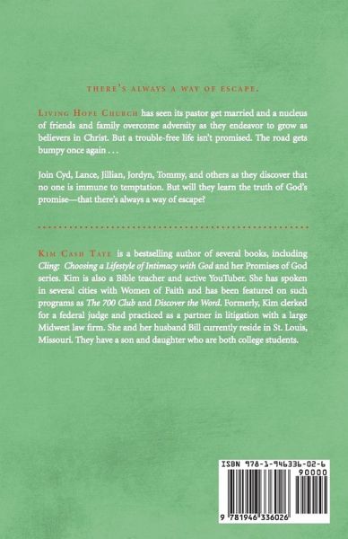 There's always a way of escape. Living Hope Church has seen its pastor get married and a nucleus of friends and family overcome adversity as they endeavor to grow as believers in Christ. But a trouble-free life isn't promised. The road gets bumpy once again . . . Join Cyd, Lance, Jillian, Jordyn, Tommy, and others as they discover that no one is immune to temptation. But will they learn the truth of God's promise-that there's always a way of escape?