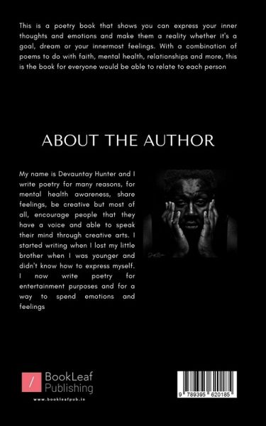 This is a poetry book that shows you can express your inner thoughts and emotions and make them a reality whether it's a goal, dream or your innermost feelings. With a combination of poems to do with faith, mental health, relationships and more, this is the book for everyone would be able to relate to each person