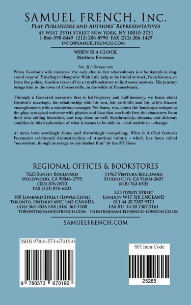 Dramatic Comedy / 5m, 3f Approximate running time: 1 hour and 45 minutes, no intermission. Various settings, some real, some imaginary, in Pennsylvania When Gordon's wife vanishes, the only clue to her whereabouts is a bookmark in dog-eared copy of Traveling to Montpelier. With little help to be found at work, from his son, or from the police, Gordon takes off to a rural bookstore to find some answers. His journey brings him to the town of Cornersville, in the wilds of Pennsylvania. Through