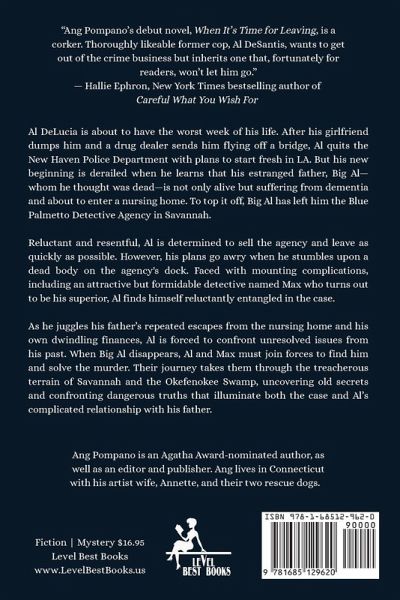 Ang Pompano is an Agatha Award-nominated author, as well as an editor and publisher. He writes the Blue Palmetto Detective Agency and Reluctant Food Columnist series for Level Best Books. His short stories have been featured in numerous anthologies, including one that won the Anthony Award. A recipient of the Mystery Writers of America's Helen McCloy Award, Ang co-founded Crime Spell Books and co-edits Best New England Crime Stories. He also serves on the New England Crime Bake committee and the Sisters in Crime Connecticut board. Ang lives in Connecticut with his artist wife, Annette, and their two rescue dogs.