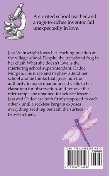 A spirited schoolteacher and a rakish inventor find unexpected love... Jess Wainwright loves her teaching position at the village school. Despite the occasional frog in her chair. What she doesn't love is the interfering school superintendent, Cadoc Morgan. His niece and nephew attend her school and he thinks that gives him the authority to make unannounced visits to her classroom for observation, and remove the microscope she obtained for science lessons. When he propositions her with a bargain that will ruin her reputation if it's discovered, Jess doesn't know what to do. Jess and Cadoc are both firmly opposed to each other - until a reckless bargain exposes everything seething beneath the surface between them.
