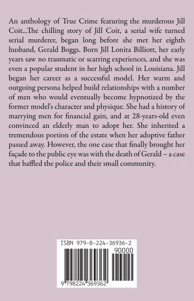 An anthology of True Crime featuring the murderous Jill Coit...The chilling story of Jill Coit, a serial wife turned serial murderer, began long before she met her eighth husband, Gerald Boggs. Born Jill Lonita Billiott, her early years saw no traumatic or scarring experiences, and she was even a popular student in her high school in Louisiana. Jill began her career as a successful model. Her warm and outgoing persona helped build relationships with a number of men who would eventually become hypnotized by the former model's character and physique. She had a history of marrying men for financial gain, and at 28-years-old even convinced an elderly man to adopt her. She inherited a tremendous portion of the estate when her adoptive father passed away. However, the one case that finally brought her façade to the public eye was with the death of Gerald - a case that baffled the police and their small community.