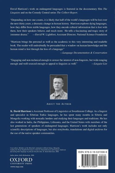 It is commonly agreed by linguists and anthropologists that the majority of languages spoken now around the globe will likely disappear within our lifetime. The phenomenon known as language death has started to accelerate as the world has grown smaller. This extinction of languages, and the knowledge therein, has no parallel in human history. K. David Harrison's book is the first to focus on the essential question, what is lost when a language dies? What forms of knowledge are embedded in a language's structure and vocabulary? And how harmful is it to humanity that such knowledge is lost forever? Harrison spans the globe from Siberia, to North America, to the Himalayas and elsewhere, to look at the human knowledge that is slowly being lost as the languages that express it fade from sight. He uses fascinating anecdotes and portraits of some of these languages' last remaining speakers, in order to demonstrate that this knowledge about ourselves and the world is inherently precious and once gone, will be lost forever. This knowledge is not only our cultural heritage (oral histories, poetry, stories, etc.) but very useful knowledge about plants, animals, the seasons, and other aspects of the natural world--not to mention our understanding of the capacities of the human mind. Harrison's book is a testament not only to the pressing issue of language death, but to the remarkable span of human knowledge and ingenuity. It will fascinate linguists, anthropologists, and general readers.