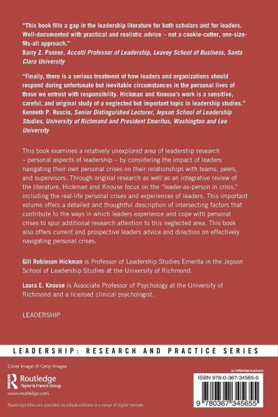 This book examines a relatively unexplored area of leadership research by considering the impact of leaders navigating their own personal crises on their relationships with teams, peers, and supervisors. Hickman and Knouse focus on the "leader-as-person in crisis," including the real-life personal crises and experiences of leaders.