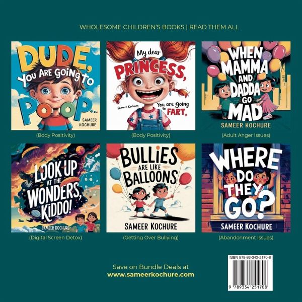 Has your child ever asked, 'Why are you yelling?' or hidden away when things got too loud? Every parent knows that even the happiest homes can sometimes feel stormy. When arguments arise, children often feel scared, confused, or even blame themselves. 'When Mamma and Dadda go mad...' by Sameer Kochure is the gentle, reassuring hug every child-and every parent-needs. This beautifully written and deeply empathetic book helps children understand that grown-ups get angry too, but it's never because of them. Through soothing, poetic language and heartfelt wisdom, it teaches kids that anger is like a passing storm-it may feel scary, but the sun always comes out. Love always returns. For parents, this book is more than just a story; it's a tool to start meaningful conversations about emotions, forgiveness, and the unbreakable bond of family. It's a reminder to pause, reflect, and reconnect when things get tough. Why parents love this book ¿¿¿: Comforts children: Helps kids feel safe and understood during difficult moments. Teaches emotional resilience: Shows children how to navigate big feelings with grace. Strengthens family bonds: Encourages open communication and empathy. Perfect for all ages: A timeless story that grows with your child. Don't let another moment go by without giving your child the reassurance they need. 'When Mamma and Dadda go mad...' is more than a book, it's a lifeline of love and understanding for every family. ¿¿¿¿¿ Written by Sameer Kochure, Amazon bestselling author of the much adored book series 'A Young Boy and His Best Friend, The Universe,' and 'The Tiny Fireball', this book is part of his 'Wholesome Children's Books' series, which deals with important aspects like body positivity, separation anxiety, bullying, how to think about arguing adults, anger issues, how to encourage kids to cutdown digital screen time, etc. Written to charm the little humans, these books are guaranteed to bring on smiles and fun times. Your favourite little human deserves this gift that helps build emotional security and unconditional love. Do you disagree?