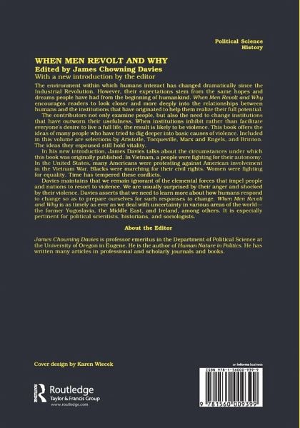 The environment within which humans interact has changed dramatically since the Industrial Revolution. However, their expectations stem from the same hopes and dreams people have had from the beginning of humankind. When Men Revolt and Why encourages readers to look closer and more deeply into the relationships between humans and the institutions that have originated to help them realize their full potential.The contributors not only examine people, but also the need to change institutions that have outworn their usefulness. When institutions inhibit rather than facilitate everyone's desire to live a full life, the result is likely to be violence. This book offers the ideas of many people who have tried to dig deeper into basic causes of violence. Included in this volume are selections by Aristotle, Tocqueville./Marx and Engels, and Brinton. The ideas they espoused still hold vitality.In his new introduction, James Davies talks about the circumstances under which this book was originally published. In Vietnam, a people were fighting for their autonomy. In the United States, many Americans were protesting against American involvement in the Vietnam War. Blacks were marching for their civil rights. Women were fighting for equality. Time has tempered these conflicts.Davies maintains that we remain ignorant of the elemental forces that impel people and nations to resort to violence. We are usually surprised by their anger and shocked by their violence. Davies asserts that we need to learn more about how humans respond to change so as to prepare ourselves for such responses to change. When Men Revolt and Why is as timely as ever as we deal with uncertainty in various areas of the world - the former Yugoslavia, the Middle East, and Ireland, among others. It is especially pertinent for political scientists, historians, and sociologists.