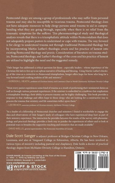 Pentecostal clergy are among a group of professionals who may suffer from personal trauma and may also be susceptible to vicarious trauma. Pentecostal theology does not have adequate resources to help clergy persons amid trauma to aid in comprehending what they are going through, especially when there is no relief from the traumatic symptoms for the sufferer. This phenomenological study and theological analysis reveals that there is a triumphalistic attitude within Pentecostalism that does not adequately prepare pastors to understand or cope with trauma. The way forward is for clergy to understand trauma not through traditional Pentecostal theology but by incorporating Martin Luther's theologia crucis and his practice of lament into existing Pentecostal theology and praxis. Consideration of literature on trauma studies, Pentecostal theology, and Luther's theology of the cross and his practice of lament are utilized to highlight the need and the suggested remedy.