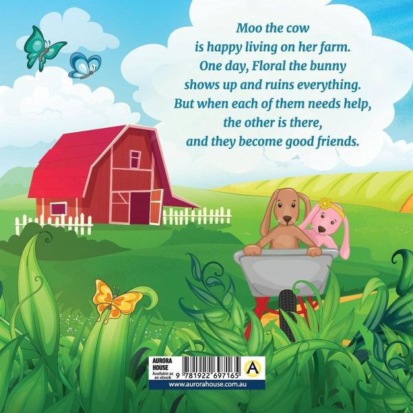 Moo the cow is happy living on her farm. One day, Floral the bunny shows up and ruins everything. But when each of them needs help, the other is there, and they become good friends. This story can show children the value of overcoming initial negative impressions, keeping promises, and helping others, even if you may not be in the mood to do so. It is a cute story for kids who love cows, bunnies, farms, or unlikely friendship stories.