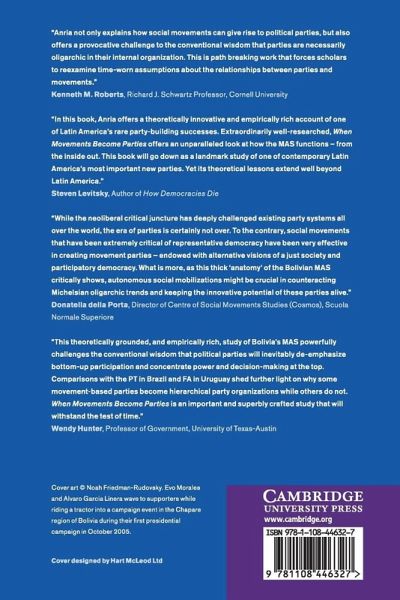 The first rigorous comparative study of movement-based parties, this book shows not only how movements form parties but also how movements contribute to shaping parties' internal politics and organizational models. Anria sheds new light on Latin America's three most innovative leftist parties: Bolivia's MAS, Brazil's PT, and Uruguay's FA.
