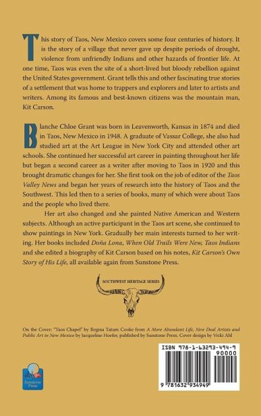 This story of Taos, New Mexico covers some four centuries of history. It is the story of a village that never gave up despite periods of drought, violence from unfriendly Indians and other hazards of frontier life. At one time, Taos was even the site of a short-lived but bloody rebellion against the United States government. Grant tells this and other fascinating true stories of a settlement that was home to trappers and explorers and later to artists and writers. Among its famous and best-known citizens was the mountain man, Kit Carson.