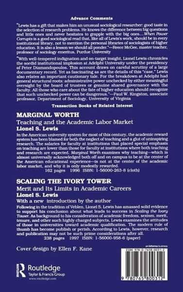 It is often said that the American academic, protected by tenure, is free to do pretty much as he or she pleases. Lewis argues that this freedom is largely an illusion. Faculty actions are greatly limited by governing boards and the academic administrators they appoint, who control institutional resources. Although ostensibly independent professionals, in many ways faculty have no more autonomy than most employees. Indeed, what power they have derives from faculty-student relationships. Lay governing boards ultimately control how money is spent and who spends it. This volume addresses issues relating to current debates over the most appropriate and effective method of academic governance. When Power Corrupts details the conflict between the governing board and administration and faculty at Adelphi University in Garden City, New York, between 1985 and 1996. This conflict culminated in the removal of the Board of Trustees by the New York State Board of Regents. The new trustees in turn removed the president. Although the book focuses on board administration-faculty relations at one university, its findings have implications for almost all other institutions of higher learning in the United States. Lewis draws on the nearly 8,000-page transcript of the hearings of the Regents. These eleven volumes of exhibits include hundreds of documents obtained from individuals and organizations. Lewis suggests that academic administrators have more control of governing boards than is generally recognized. Besides influencing who is asked to join a board, administrators may largely determine the information boards receive and on which they must make decisions. When faced with decisions, boards oftendefer to academic administrators or acquiesce to a campus president's suggestions. Because conflict over governance all too often takes precedence over academic work on American campuses, the implications for higher learning are profound. Faculty, academic administrators
