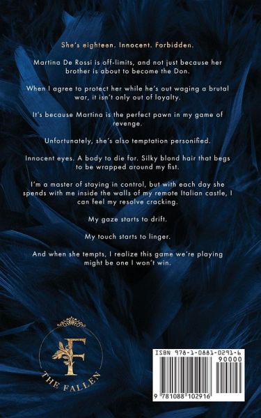 She's eighteen. Innocent. Forbidden. Martina De Rossi is off-limits, and not just because her brother is about to become the Don. When I agree to protect her while he's out waging a brutal war, it isn't only out of loyalty. It's because Martina is the perfect pawn in my game of revenge. Unfortunately, she's also temptation personified. Innocent eyes. A body to die for. Silky blond hair that begs to be wrapped around my fist. I'm a master of staying in control, but with each day she spends with me inside the walls of my remote Italian castle, I can feel my resolve cracking. My gaze starts to drift. My touch starts to linger. And when she tempts, I realize this game we're playing might be one I won't win.