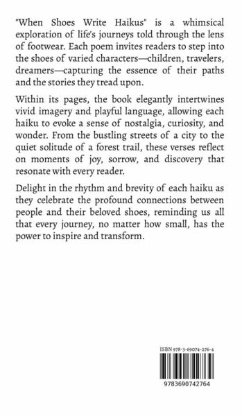 "When Shoes Write Haikus" is a whimsical exploration of life's journeys told through the lens of footwear. Each poem invites readers to step into the shoes of varied characters-children, travelers, dreamers-capturing the essence of their paths and the stories they tread upon. Within its pages, the book elegantly intertwines vivid imagery and playful language, allowing each haiku to evoke a sense of nostalgia, curiosity, and wonder. From the bustling streets of a city to the quiet solitude of a forest trail, these verses reflect on moments of joy, sorrow, and discovery that resonate with every reader. Delight in the rhythm and brevity of each haiku as they celebrate the profound connections between people and their beloved shoes, reminding us all that every journey, no matter how small, has the power to inspire and transform.