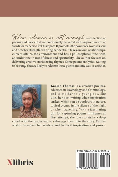 When silence is not enough is a collection of poems and lyrics narrated in emotionally inspired weave of words for readers to feel its impact. It promotes the power of a woman's soul and how her strength can bring her depth. How life may bring you ups and downs but nonetheless, you can always strive hard and go up. It takes on love, relationships, current affairs, music, philosophy and often resides around mindfulness and spirituality. The author focuses on delivering creative stories using rhymes. Many are written with a hook line in the form of songs, as inspired at the time of catching the ink spill. You are likely to relate to the poems in some way or another.