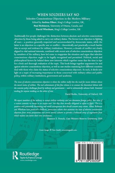 Foreword Jeff McMahan; 'Sometime they'll give a war and nobody will come' Andrea Ellner Paul Robinson David Whetham; Part I Arguments For and Against Accepting Selective Conscientious Objection; Chapter 1 The Duty of Diligence: Knowledge Responsibility and Selective Conscientious Objection Brian Imiola; Chapter 2 There is No Real Moral Obligation to Obey Orders: Escaping from 'Low Cost Deontology' Emmanuel R. Goffi; Chapter 3 Selective Conscientious Objection: A Violation of the Social Contract Melissa Bergeron; Chapter 4 Who Guards the Guards? The Importance of Civilian Control of the Military David Fisher; Chapter 5 An Empirical Defense of Combatant Moral Equality Michael Skerker; Chapter 6 Selective Conscientious Objection and the Just Society Dan Zupan; Part II Case Studies in Selective Conscientious Objection; Chapter 7 Selective Conscientious Objection in Australia Stephen Coleman Nikki Coleman Richard Adams; Chapter 8 Conscientious Objection to Military Service in Britain Stephen Deakin; Chapter 9 Selective Conscientious Objection: Philosophical and Conceptual Doubts in Light of Israeli Case Law Yossi Nehushtan; Chapter 10 Claims for Refugee Protection in Canada by Selective Objectors: An Evolving Jurisprudence Yves Le Bouthillier; Chapter 11 Conscience in Lieu of Obedience: Cases of Selective Conscientious Objection in the German Bundeswehr Jürgen Rose; Part III Conclusions; Chapter 12 Selective Conscientious Objection: Some Guidelines for Implementation J. Carl Ficarrotta; Chapter 13 War Resisters in the US and Britain - Supporting the Case for a Right to Selective Conscientious Objection? Andrea Ellner; Chapter 14 The Practice and Philosophy of Selective Conscientious Objection Andrea Ellner Paul Robinson David Whetham;