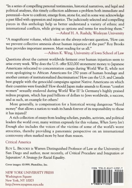 Leading scholars, activists, and political leaders on being victim's of the world's worst atrocities "How much compensation ought to be paid to a woman who was raped 7,500 times? What would the members of the Commission want for their daughters if their daughters had been raped even once?"-Karen Parker, speaking before the U.N. Commission on Human Rights Seemingly every week, a new question arises relative to the current worldwide ferment over human injustices. Why does the U.S. offer $20,000 atonement money to Japanese Americans relocated to concentration camps during World War II, while not even apologizing to African Americans for 250 years of human bondage and another century of institutionalized discrimination? How can the U.S. and Canada best grapple with the genocidal campaigns against Native Americans on which their countries were founded? How should Japan make amends to Korean "comfort women" sexually enslaved during World War II? Why does South Africa deem it necessary to grant amnesty to whites who tortured and murdered blacks under apartheid? Is Germany's highly praised redress program, which has paid billions of dollars to Jews worldwide, a success, and, as such, an example for others?More generally, is compensation for a historical wrong dangerous "blood money" that allows a nation to wash its hands forever of its responsibility to those it has injured? A rich collection of essays from leading scholars, pundits, activists, and political leaders the world over, many written expressly for this volume, When Sorry Isn't Enough also includes the voices of the victims of some of the world's worst atrocities, thereby providing a panoramic perspective on an international controversy often marked more by heat than reason.