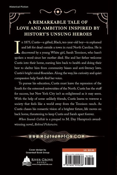 When Sounds Collide is a richly layered story of love and ambition set against the backdrop of the American South in the late 1800s. Custis-a gifted, Black, ten-year-old boy orphaned and left for dead-is discovered by a young White girl. Sarah Tennison hasn't spoken a word since her mother died. Nursed back to health and raised by Sarah's widowed father, Custis is sheltered from community biases and anti-literacy laws. In the safety of the Tennison home, his bright mind has room to flourish and he strives to advance to his potential. Along the way, Custis' curiosity and quiet compassion help Sarah find her voice. Sarah and Custis develop an unbreakable bond, but intolerance and bigotry prohibit marriage. To pursue his education, Custis must leave the repression of the South. He sets his sights on the esteemed universities of New York City, where he dreams of working in cutting-edge science labs to develop a revolutionary medical device. Custis has the stuff for success, but New York City isn't as enlightened as it may seem. Custis assumes a false identity to navigate the exclusionary culture of higher education. With the help of some unlikely friends, Custis learns to traverse a society that feels like a world away from the ranch in North Carolina. Life moves on back home, with forces threatening to keep Custis and Sarah apart forever. At the heart of this deeply drawn saga is the power of love to inspire greatness in us all. Custis-a fictional representation of history's many unsung heroes-chases his goals with compelling determination, driven by his romantic vision of a brighter future.