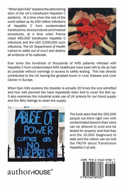 When Spin Kills explains the astonishing story of the UKs transfusion Hepatitis C epidemic. At a time when the rest of the world added up its 200 million infections of Hepatitis C from contaminated transfusions, blood products and medical procedures, at a time when France noted 450,000 transfusion hepatitis C infections and the USA 2,000,000 such infections. The UK Department of Health rushed to settle out of court and destroy all evidence of its outbreak. Ever since the hundreds of thousands of NHS patients infected with Hepatitis C from contaminated NHS healthcare have been left to die as fast as possible without warnings or access to safety testing. This has directly contributed to the UK having the greatest boom in Liver Disease and Liver Cancer in Europe. When Spin Kills explains the disaster is actually 20 times the size admitted and how well planned lies have repeatedly been told to cover the fact up. It also examines the industrial scale use of UK prisons for our blood supply and the filthy failings to clean the supply.