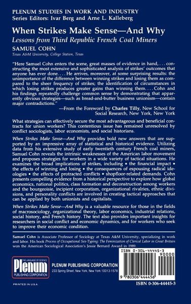 `Cohn construct[s] the most extensive and sophisticated analysis of strikes' outcomes that anyone has ever done... With exemplary clarity, Cohn lays out his ideas, sources, methods, findings, substantive conclusions, and strategic inferences. Informed readers are likely to wonder how conclusions drawn from the experience of French miners between 1890 to 1935 apply to other times and places... Cohn's powerful analyses give us new reasons for wanting to know.' from the foreword by Charles Tilly, New School for Social Research, New York