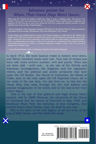 Titanic sank in 1912, in the midst of a US presidential campaign and in the week in which the British government fought to give Home Rule to Ireland. JP Morgan, whose trusts owned the shipping line, became an immediate political target. Shares in the Marconi companies, credited with saving the survivors, rocketed - and three members of the British Cabinet had illicit share-holdings in Marconis. The shipbuilders refused to admit that the 1500 dead had died because their 'settled scientific consensus' - and US immigration laws - had doomed them. And a few staunch lawyers and judges, in Britain and America, refused to let political corruption and influence sway them from their duties. Praised by James Delingpole & Anne-Elisabeth Moutet, this is the story of the skulduggery and shabby compromises of 1912, the eventual revolution in safety measures that came of the disaster, and how Titanic sails on in shaping the modern world.