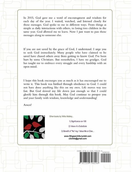 A daily devotional for those seeking wisdom, knowledge, and understanding. God has blessed me to bless others through my personal struggles. The contents of this book are available for free on www.5thgearchills.tumblr.com God bless you and your family!