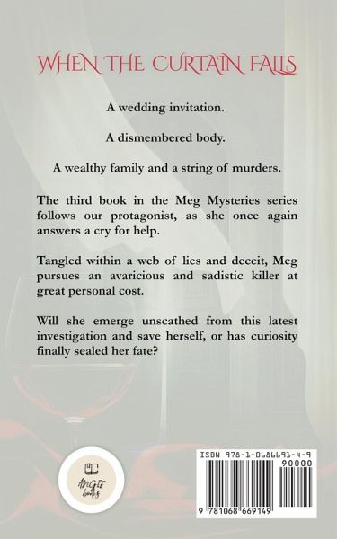 When a wedding invitation arrives, Meg Castleton assumes it will be a rare moment of peace, an elegant affair among friends, far removed from the dangers of her past investigations. But in When The Curtain Falls, celebrations quickly dissolve into horror when a dismembered body is discovered, triggering a chain of events that will drag Meg into one of her most harrowing cases yet. At the centre of the mystery lies a wealthy and influential family whose opulent veneer hides generations of secrets, betrayals, and bitterness. As Meg begins to unravel the threads of the case, it becomes clear that someone close to the family is willing to kill to protect what they've built or destroy what stands in their way. This time, Meg isn't alone. Her husband, Finlay Castleton, a calm and steady presence in her often chaotic life, is by her side. But their bond is put to the ultimate test when Finlay is abducted in a brutal warning meant to scare Meg off the trail. Tortured and left for dead, Finlay's survival hangs by a thread, propelling Meg into a desperate race against time, where every clue might be her last. With danger closing in and the cost of the truth growing steeper by the day, Meg must navigate a labyrinth of lies, shifting loyalties, and her own growing fears. Her determination to see justice served could cost her everything, including the man she loves. Gripping, emotional, and packed with pulse-pounding suspense, When The Curtain Falls dives deep into the personal as well as the perilous. As Meg confronts a cunning and sadistic killer, she must decide how far she's willing to go and what she's willing to lose to bring the truth to light.